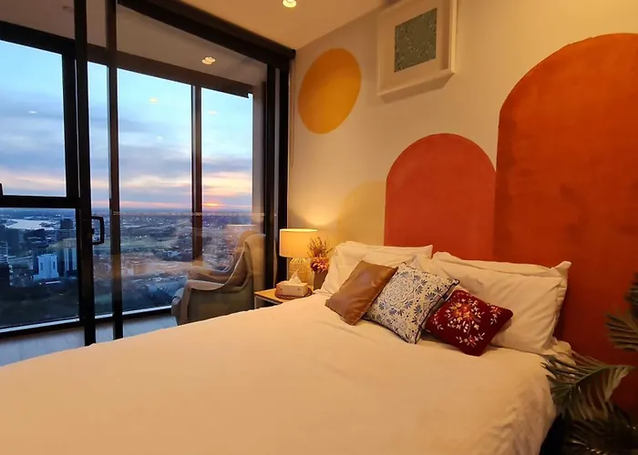 位于墨尔本墨尔本中央商业区,1Br Sunset Glow Central Retreat! Free Tram Zone距离墨尔本, 维多利亚州机场15公里。 度假屋设有1间卧室和1间浴室。